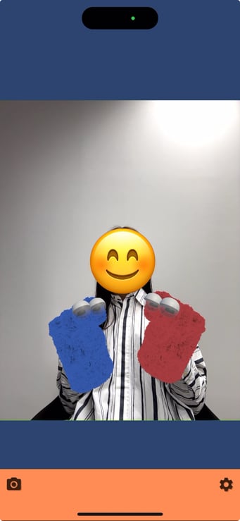 Puppetシーン(左の画像)は、左右の手を認識して赤と青のPuppetを手につけているかのように映ります。