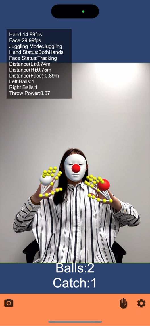 HandとFaceのコンポーネントを使用した、ジャグリングゲームのシーンです。