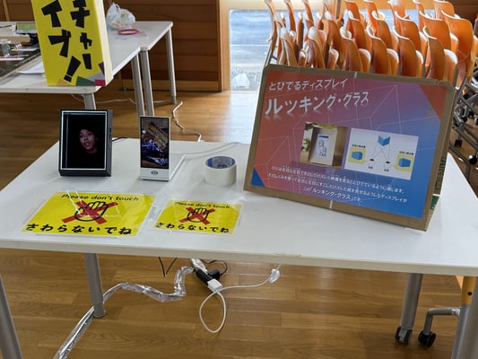 さらに、来場した子どもや保護者が「どうやって作ってるの?」と興味を持ってくれることを期待して、「ジェスチャー・ドライブ!」や「きゃらみらー」の仕組みや作り方を壁に貼って解説しました!